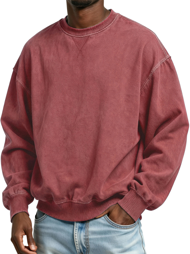Men's 100% Cotton Retro Casual Washed Distressed Crew Neck Long Sleeve Sweatshirt