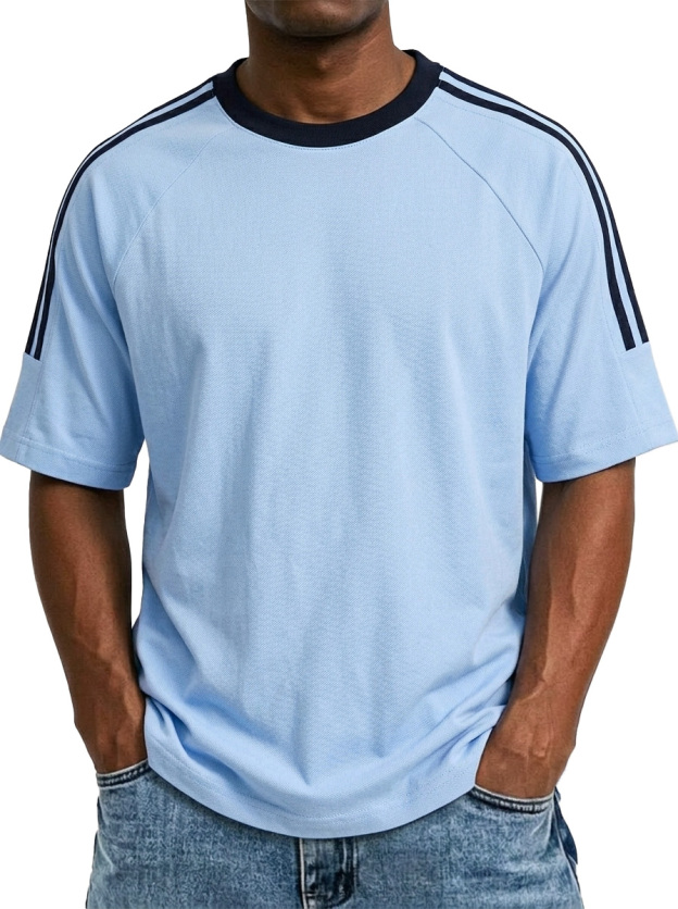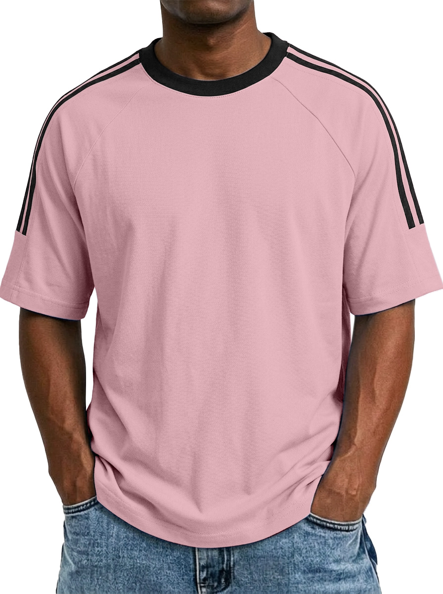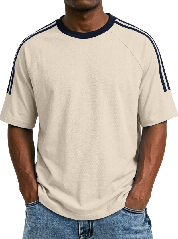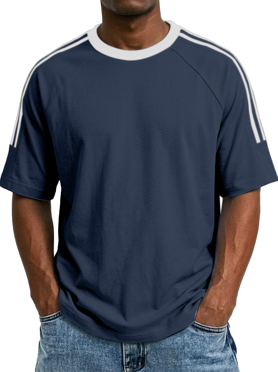 Men's American Contrast Three-stripes Pure Cotton Comfortable And Breathable Short-sleeved T-shirt