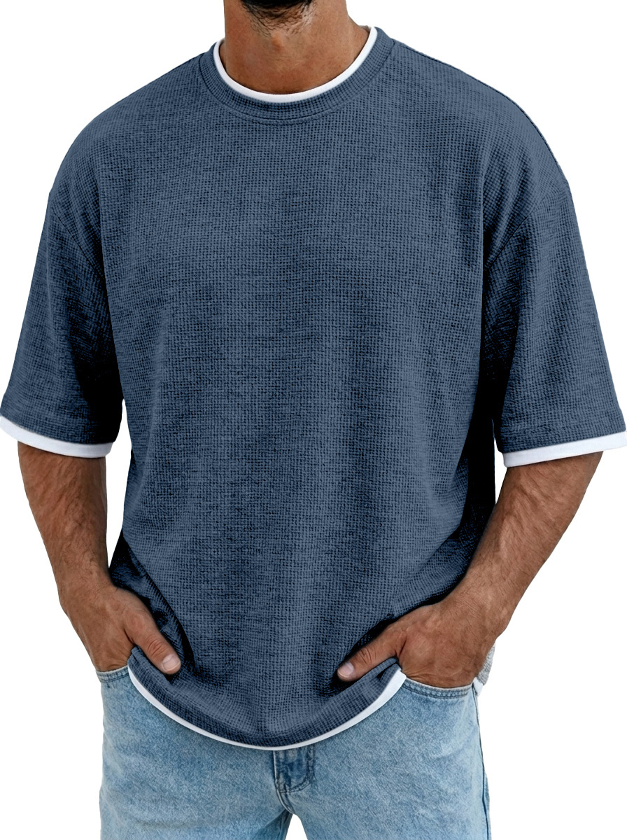 Men's Casual And Comfortable Solid Color Texture Short-sleeved Polo Shirt