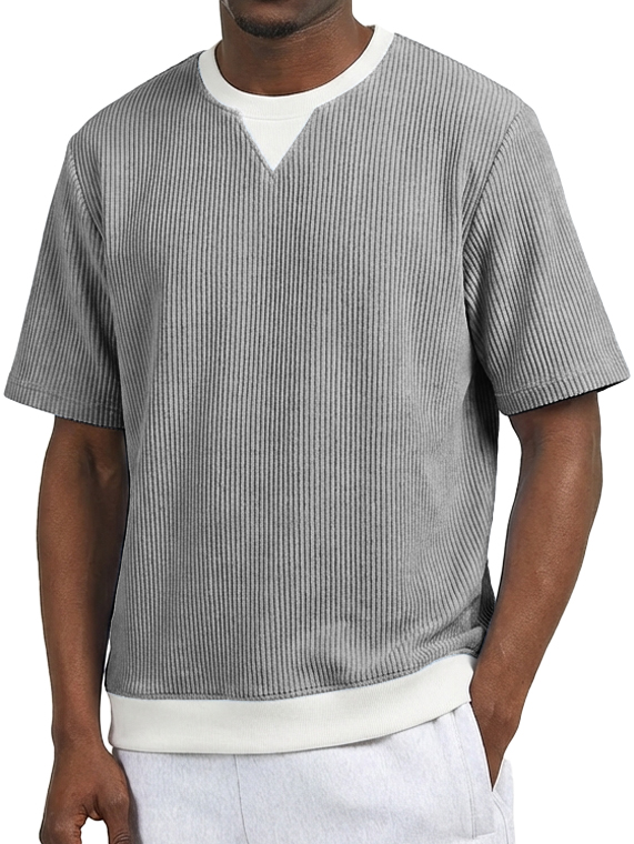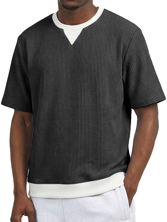 Men's Casual V-Neck Faux Two-Piece Color Block Short-Sleeve T-Shirt