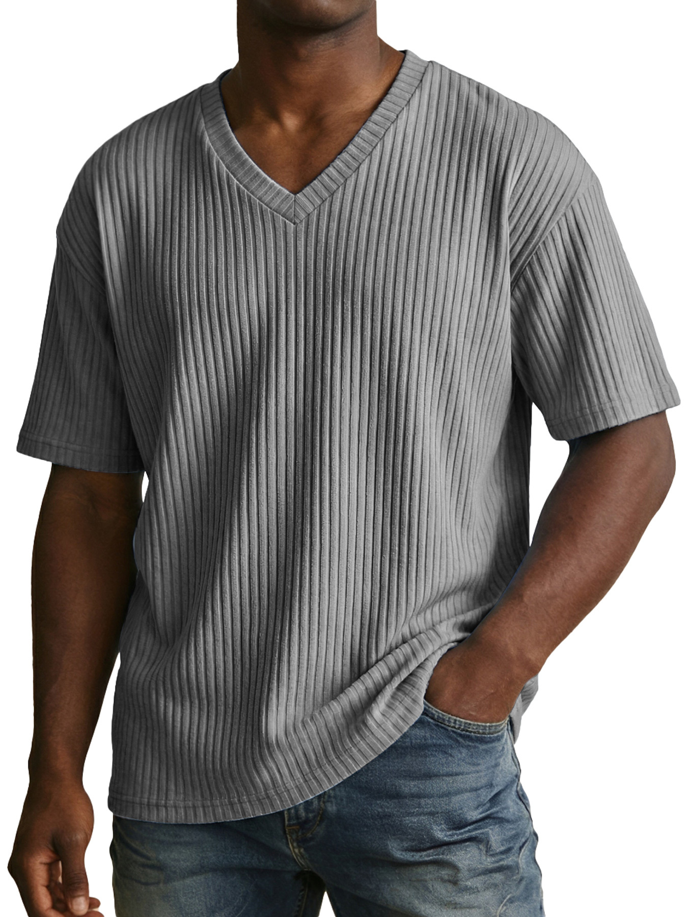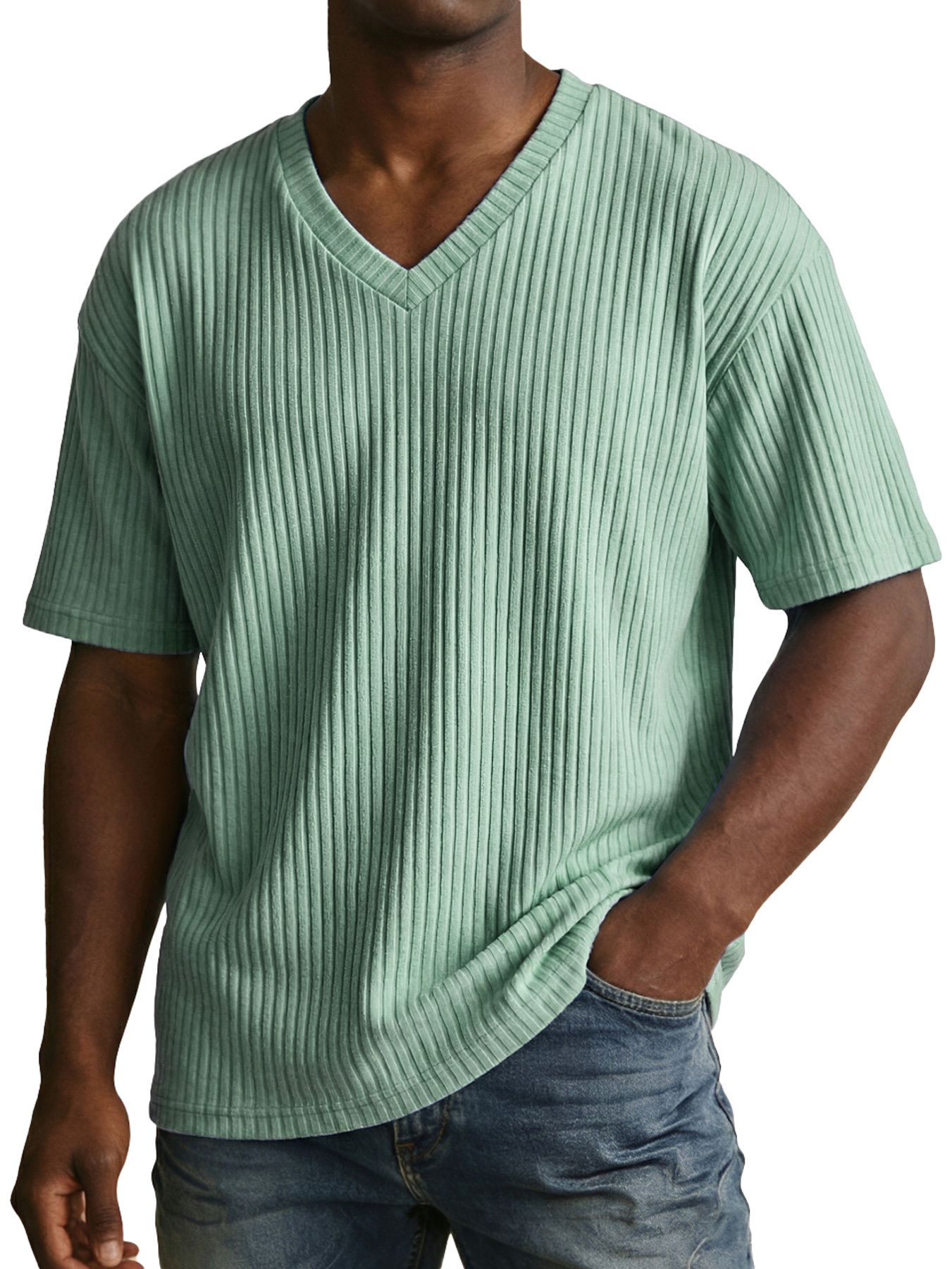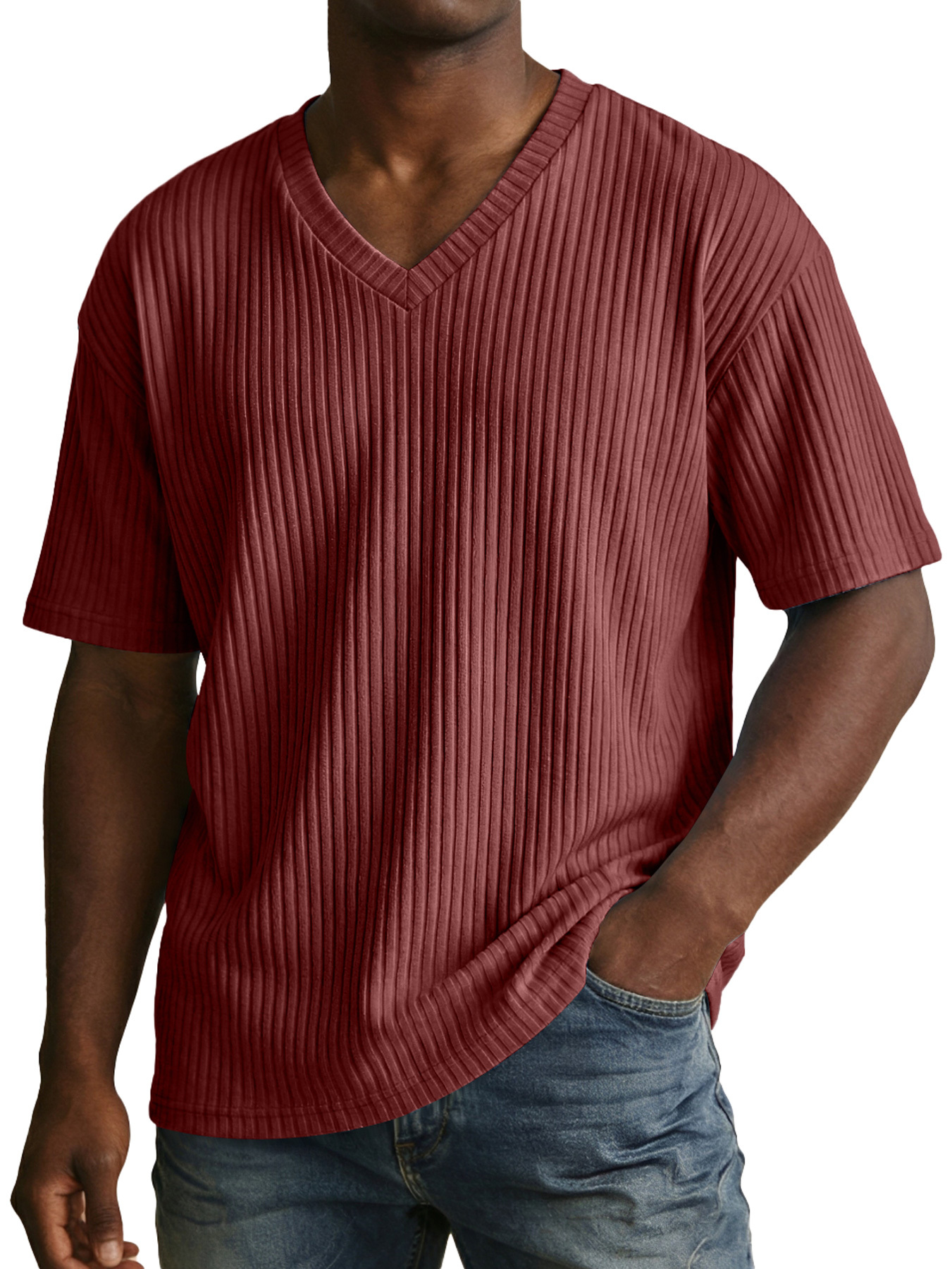 Men's Casual V-neck Ribbed Short-sleeved T-shirt