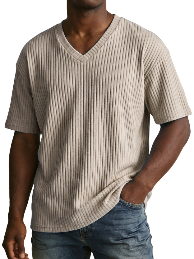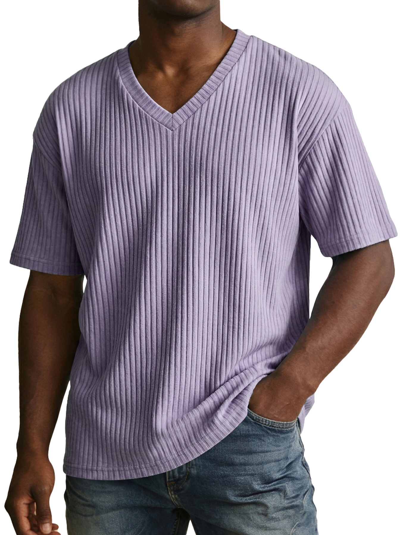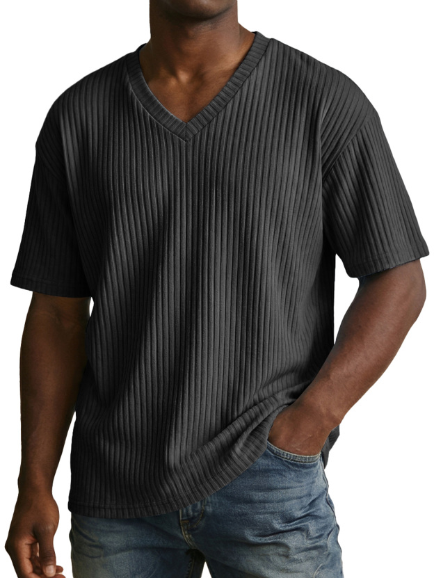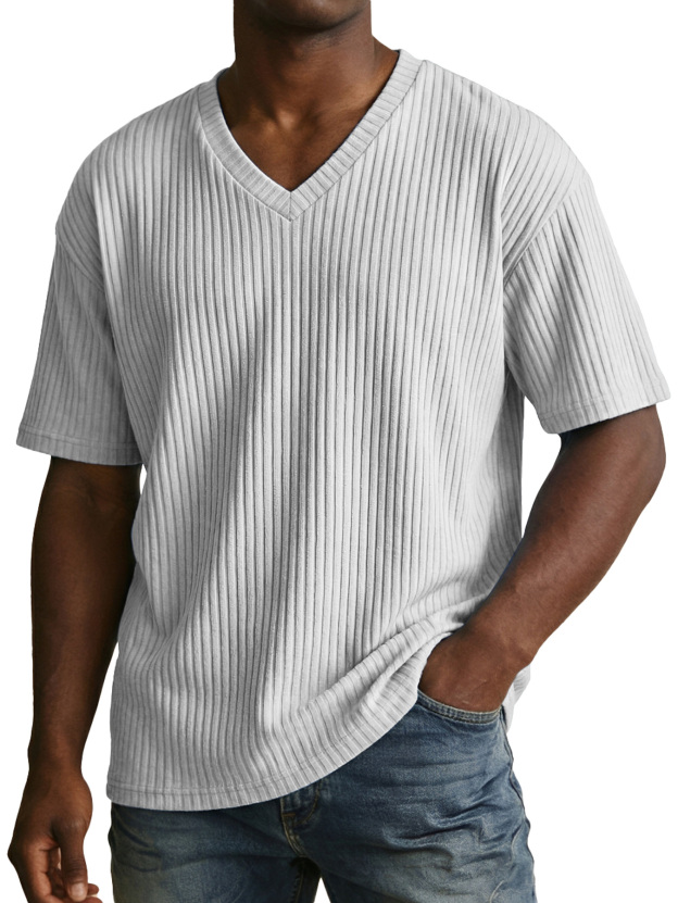 Men's Casual V-neck Ribbed Short-sleeved T-shirt