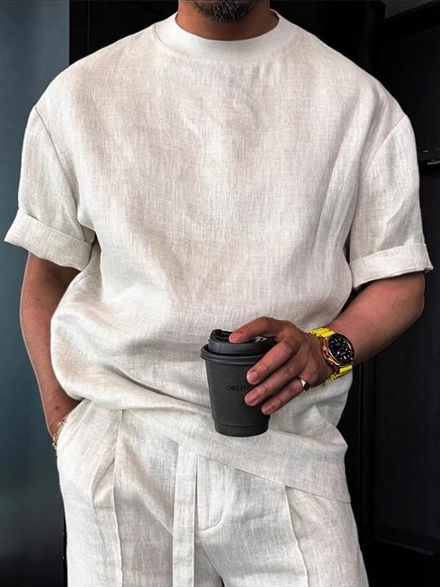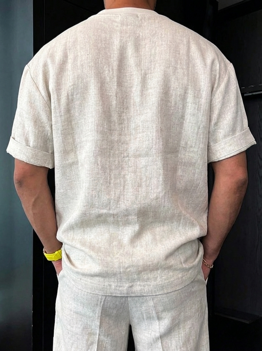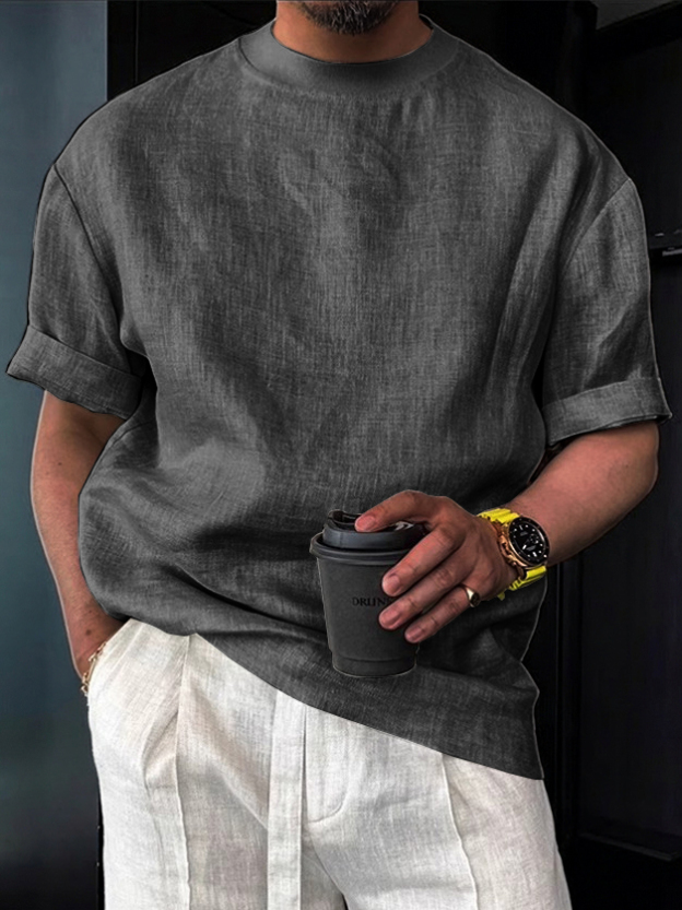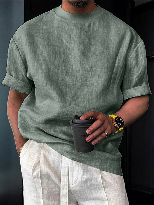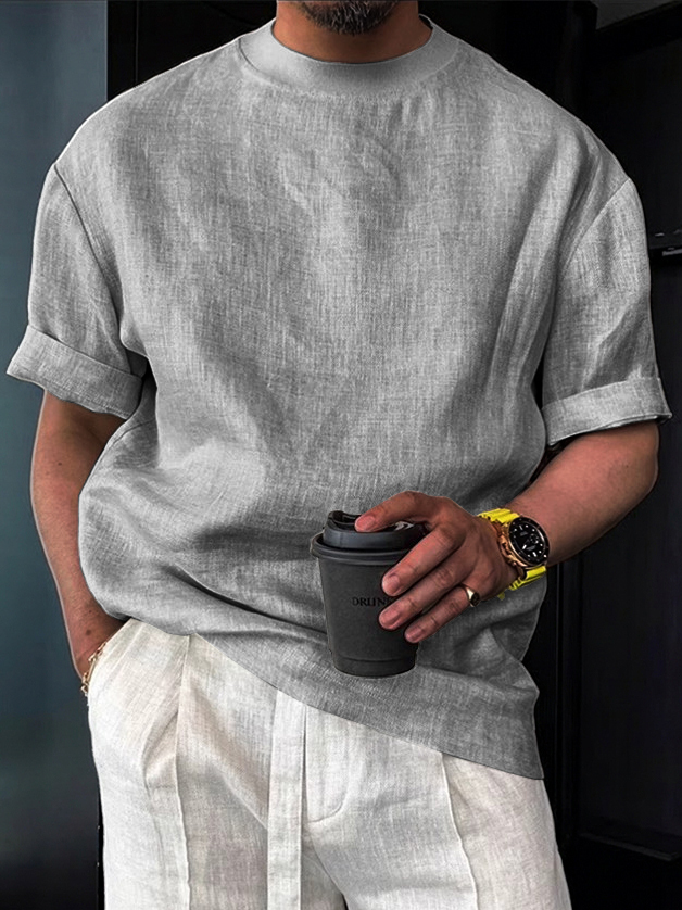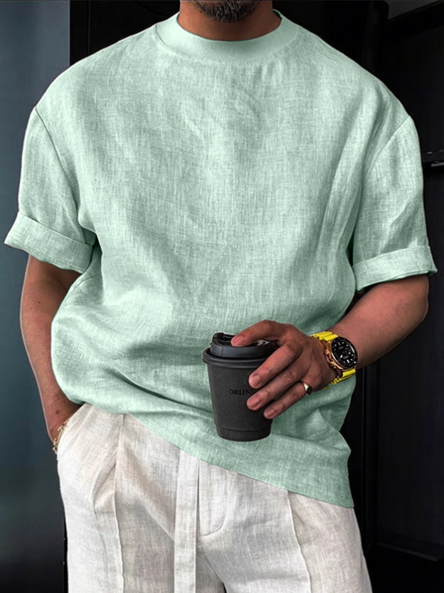 Men's Cotton Linen Casual Vintage Style Crew Neck T-Shirt