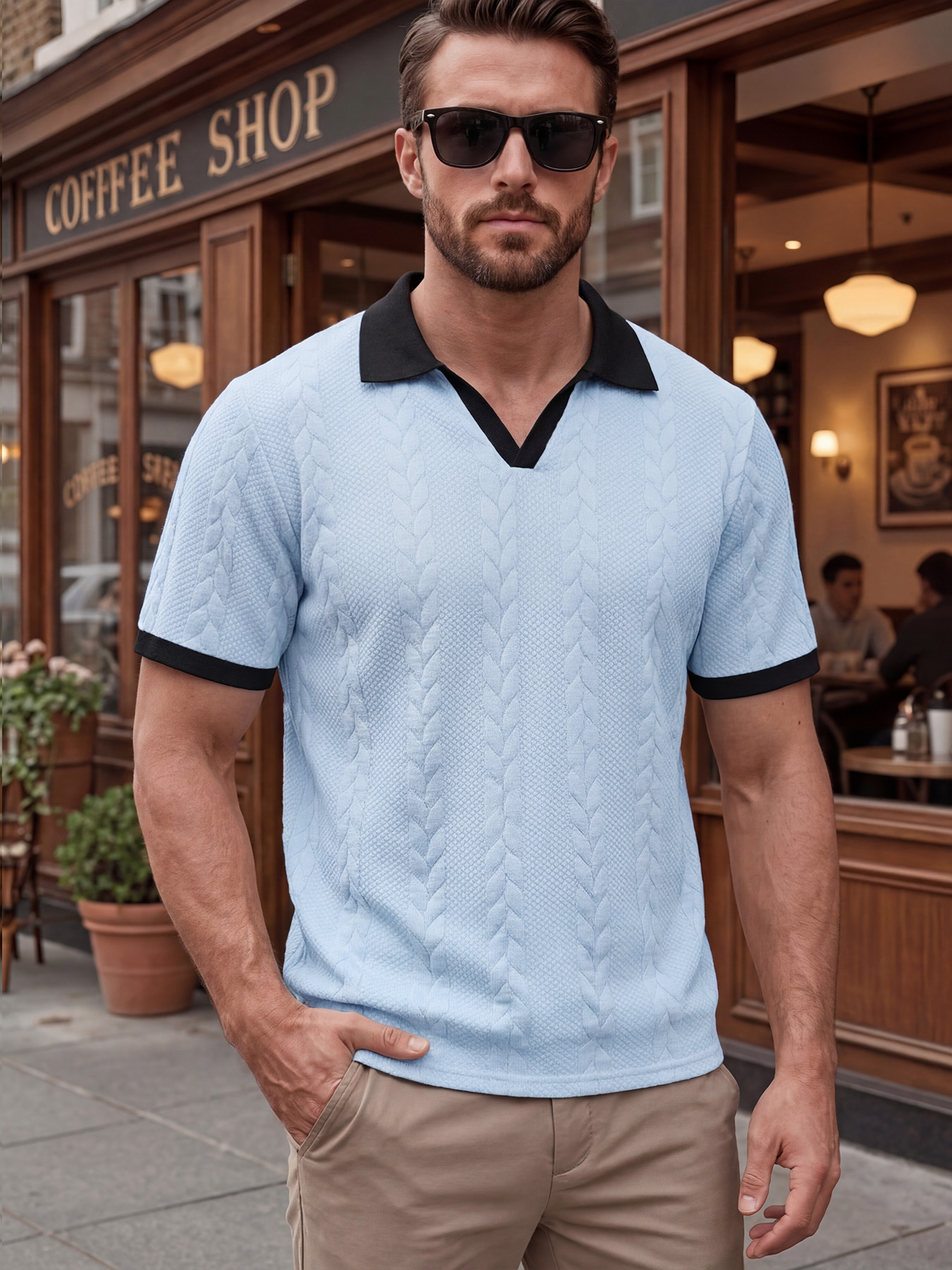 Men's Daily Contrast Jacquard Short Sleeve Polo Neck T-shirt