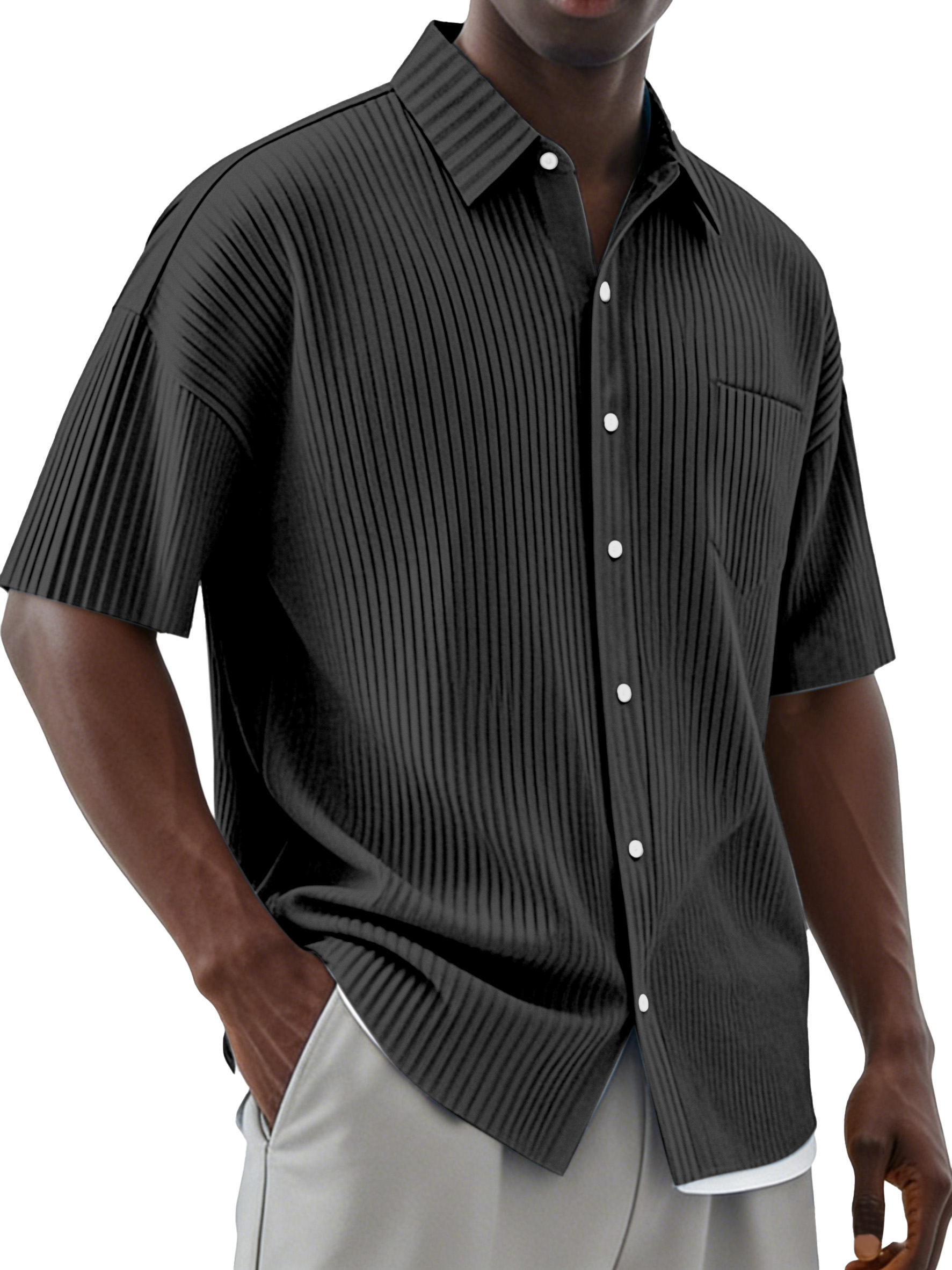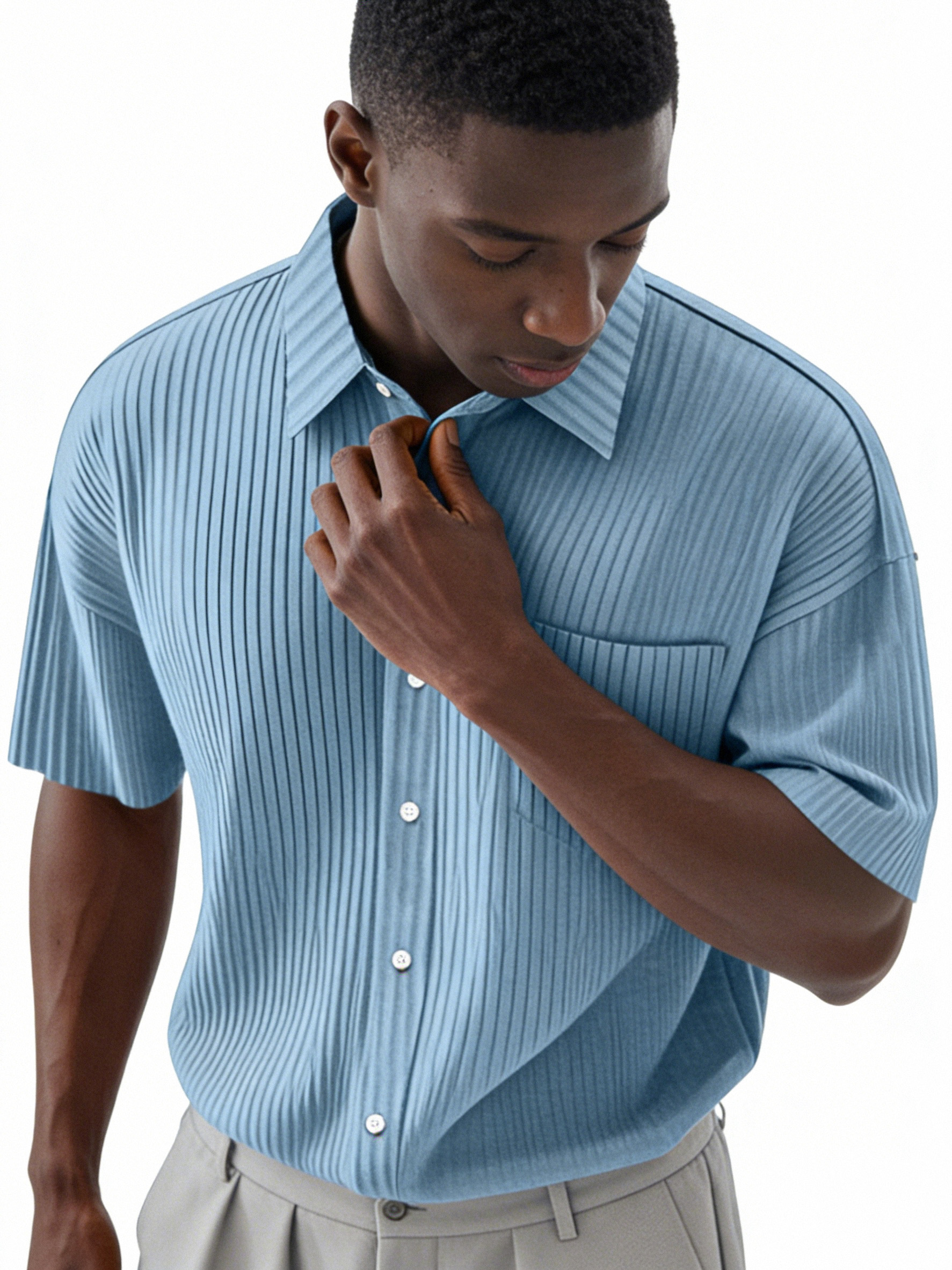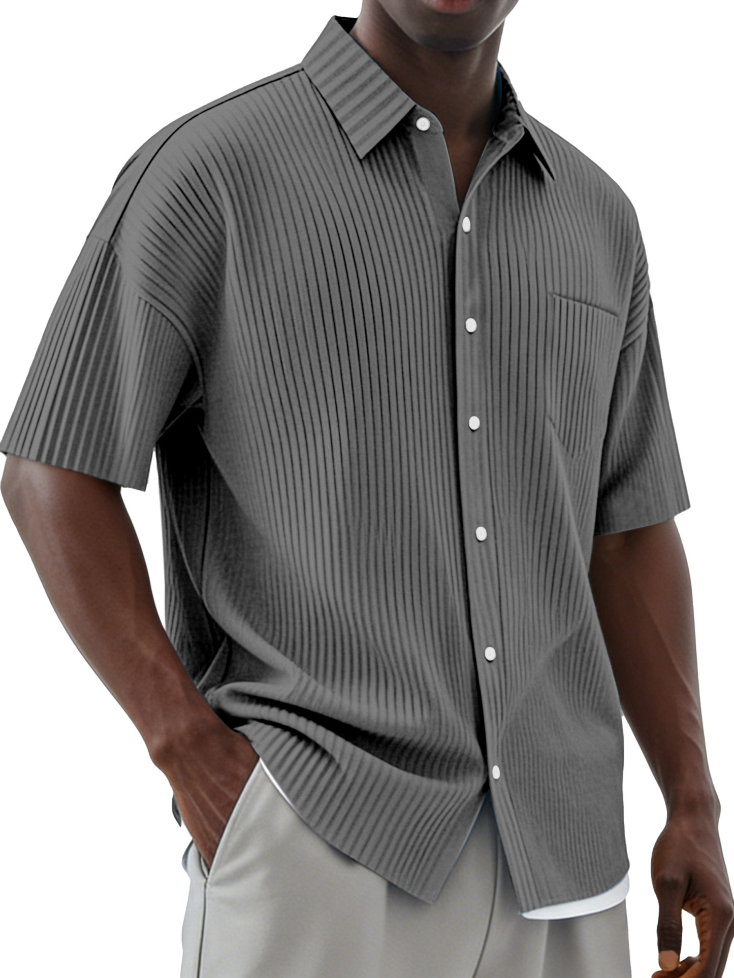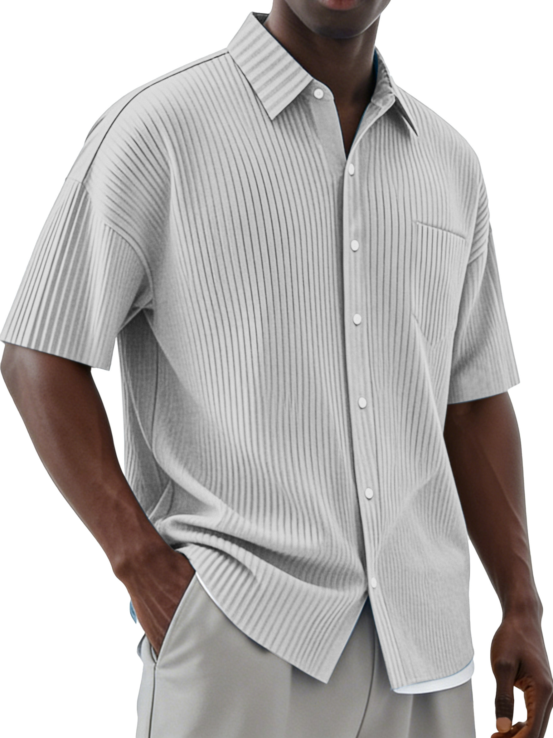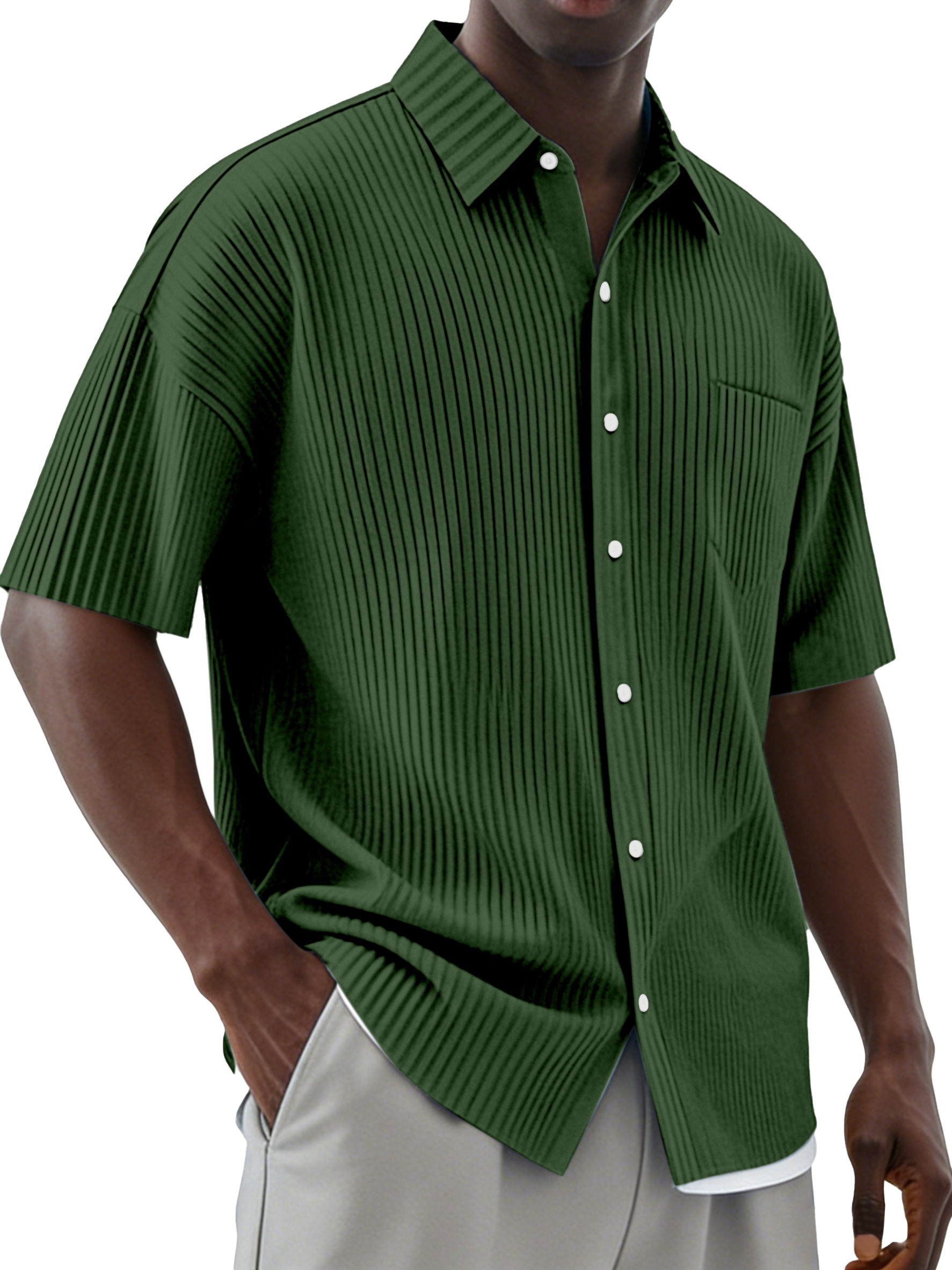 Men's Daily Simple Vertical Pit Lapel Button Short Sleeve Shirt