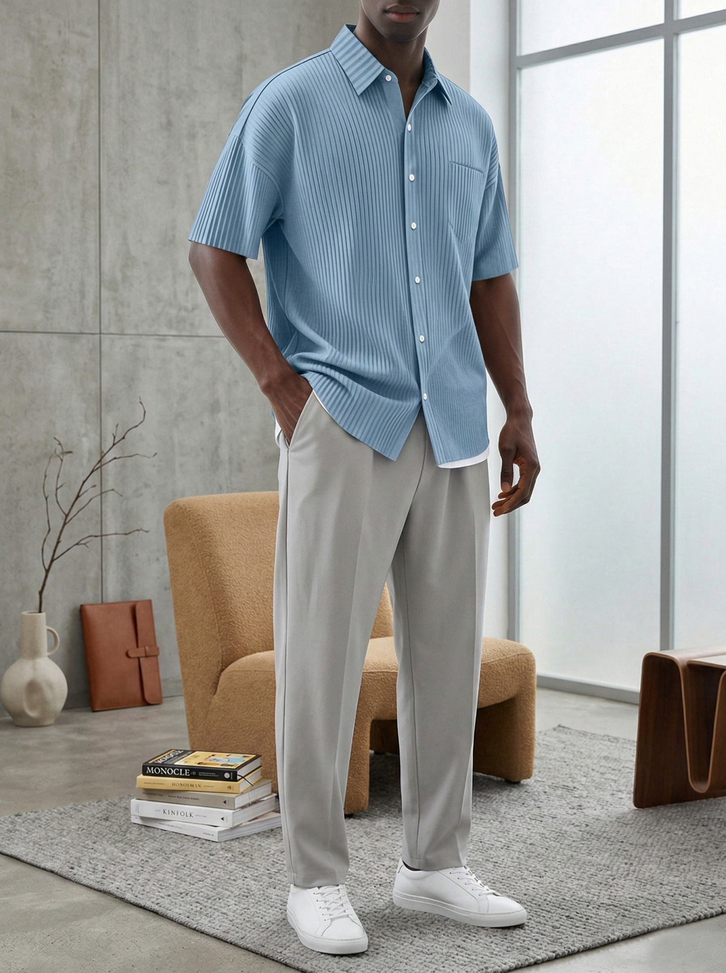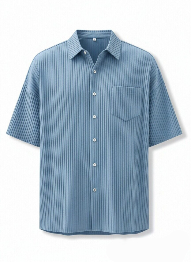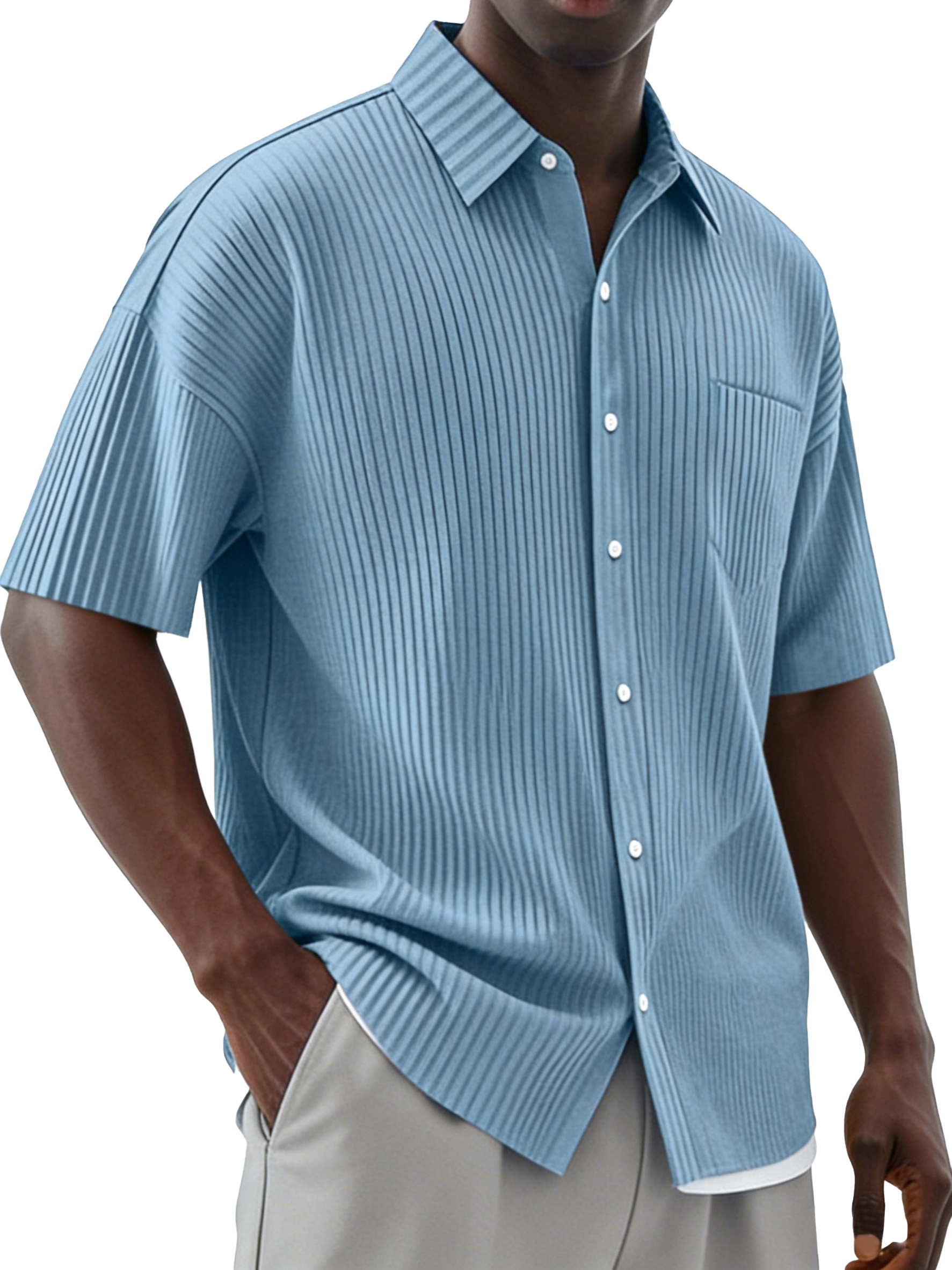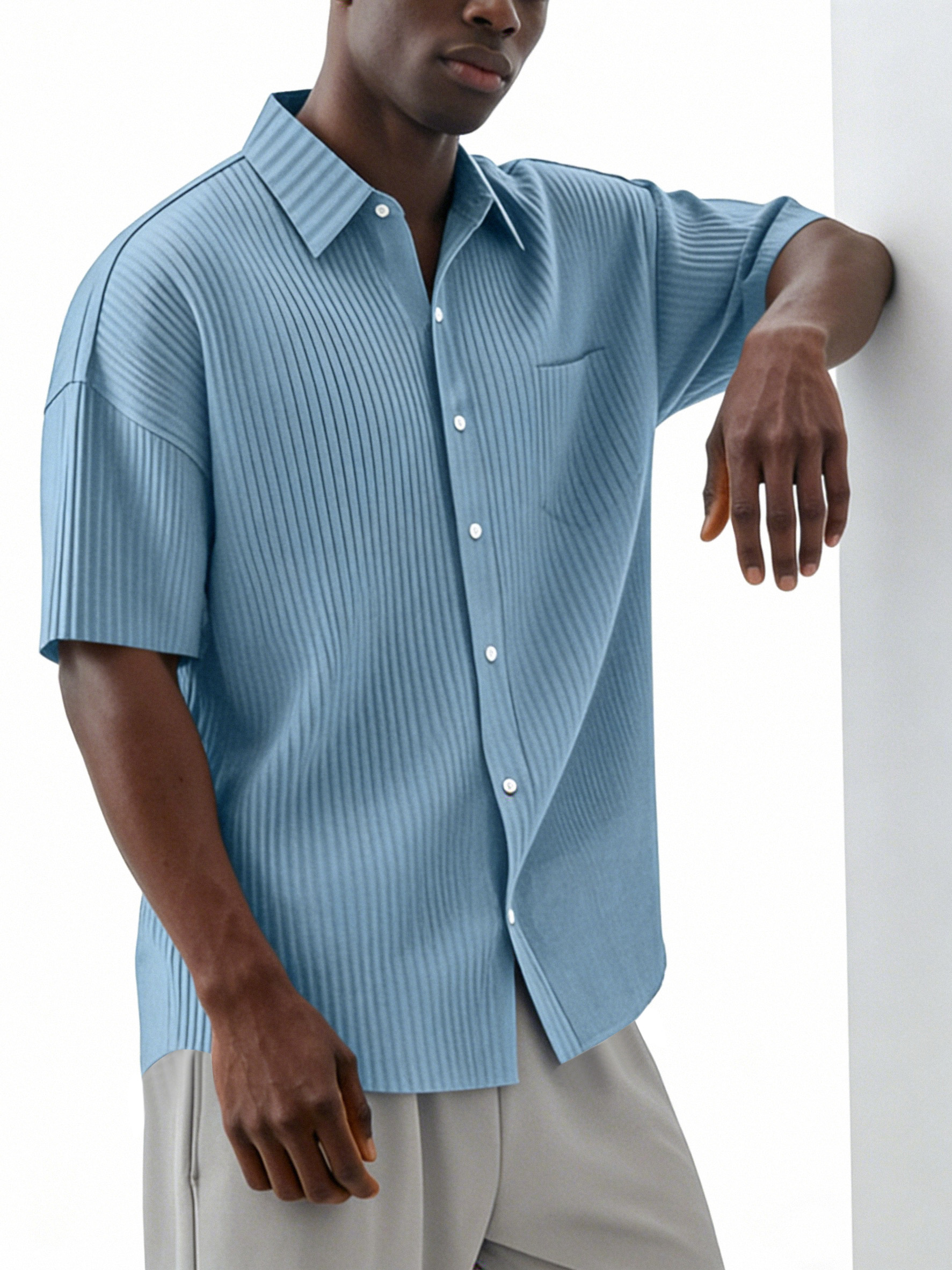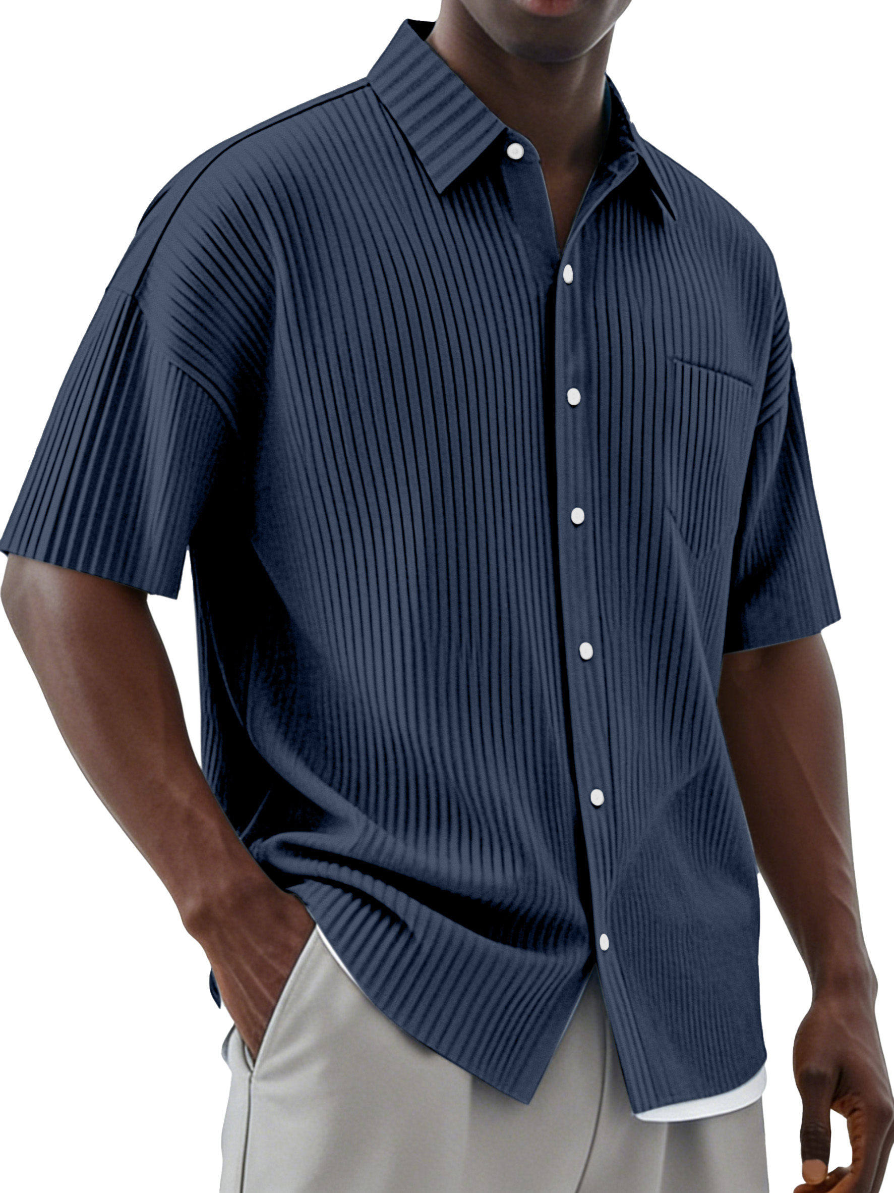Men's Daily Simple Vertical Pit Lapel Button Short Sleeve Shirt