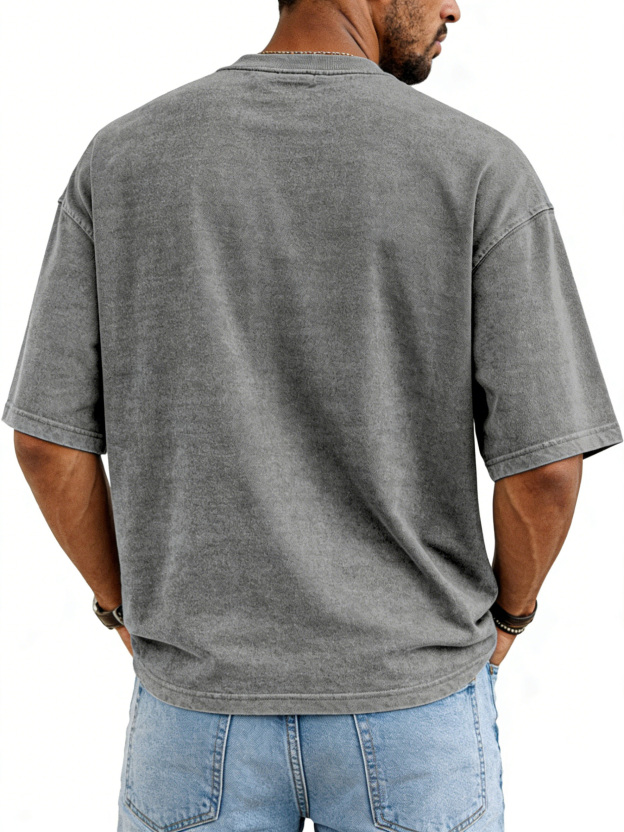 Men's Retro Deconstructed Design Solid Color Round Neck Short Sleeve T-shirt