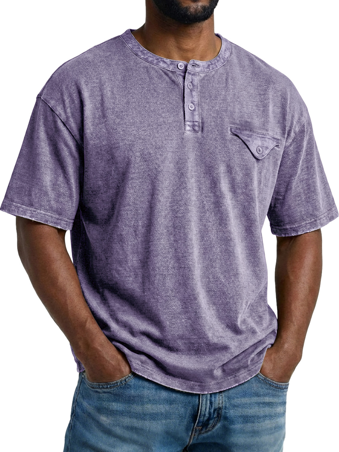 Men's Retro Pocket Design Casual Short-Sleeve Henley Shirt