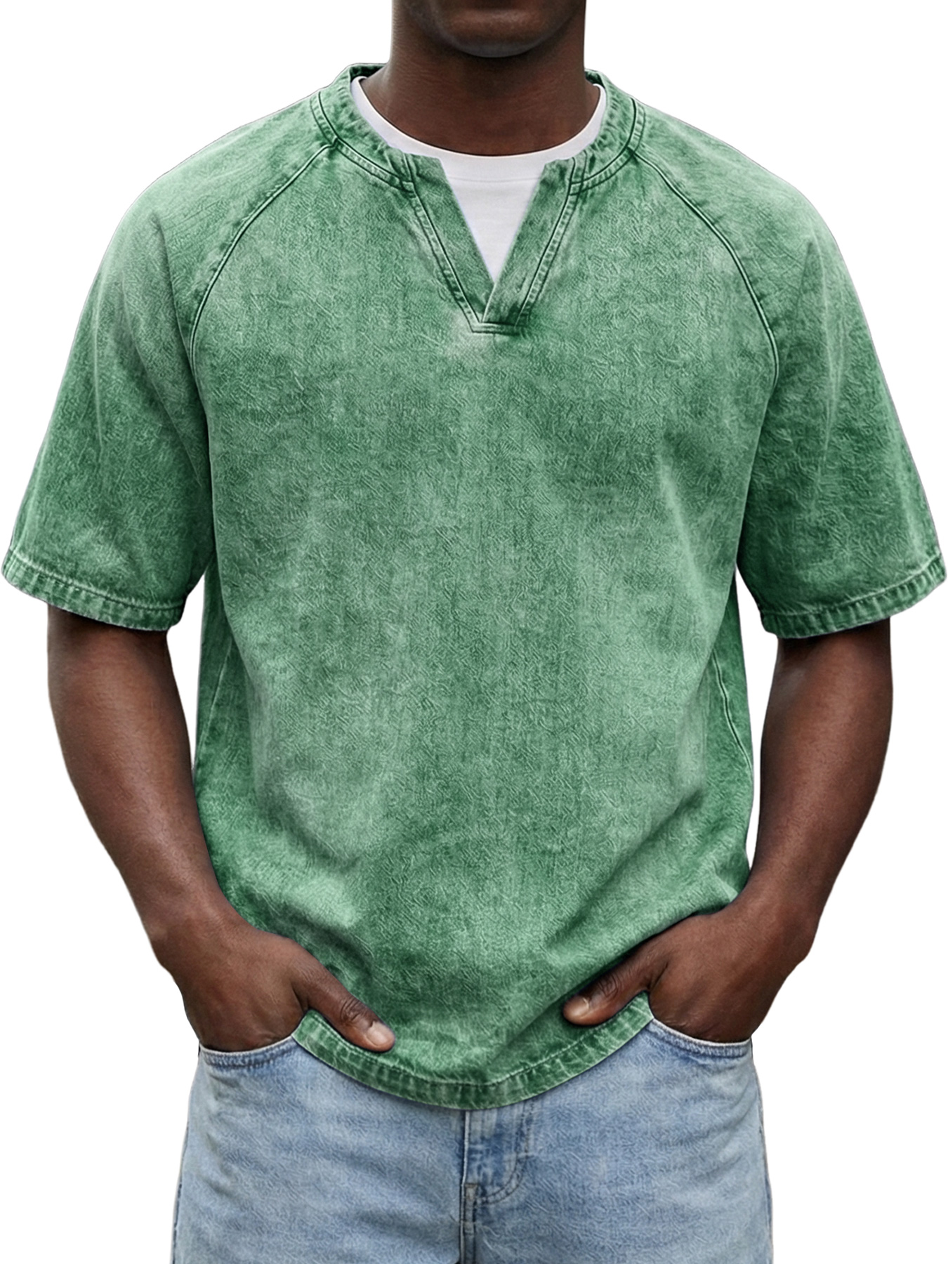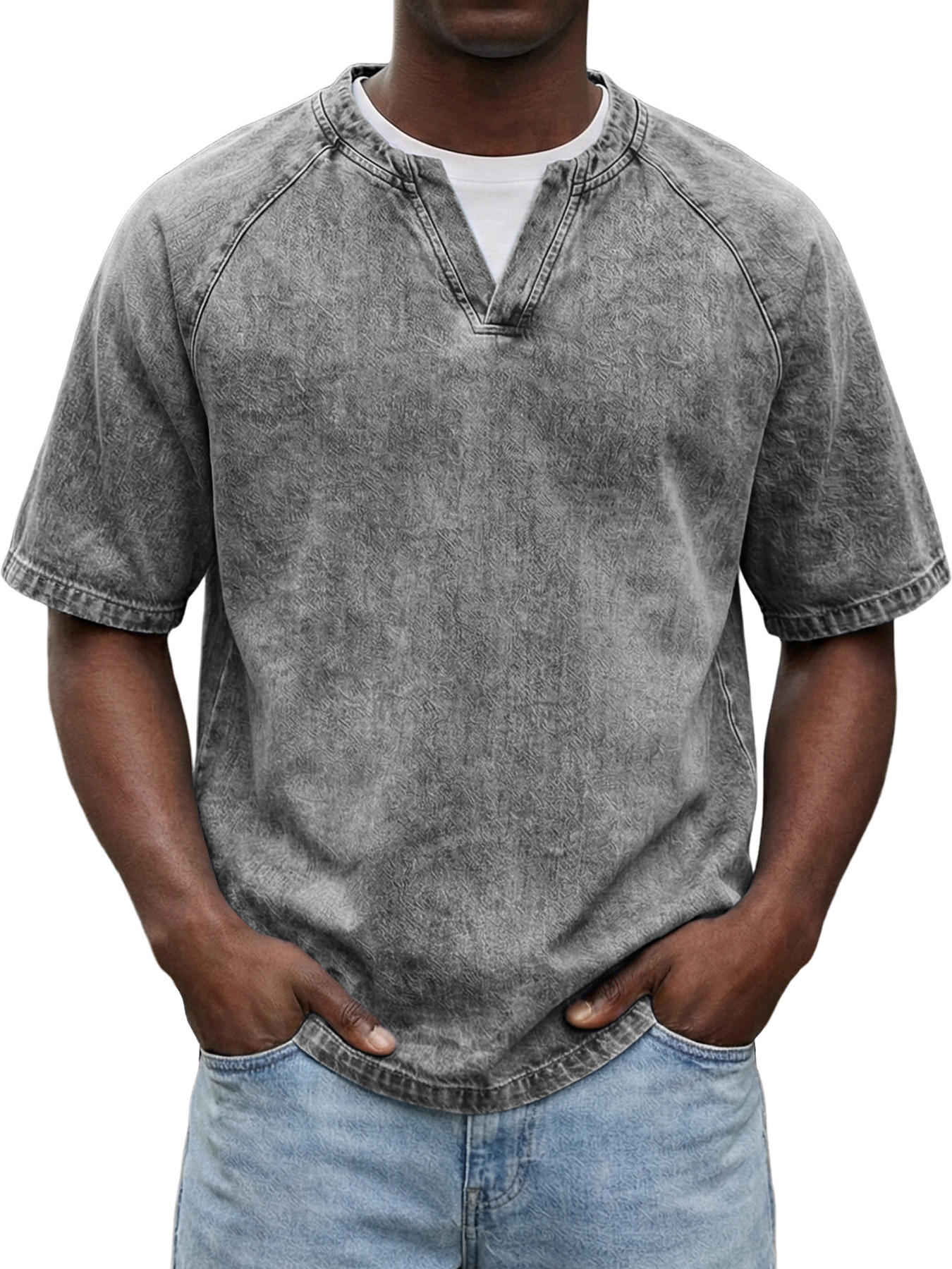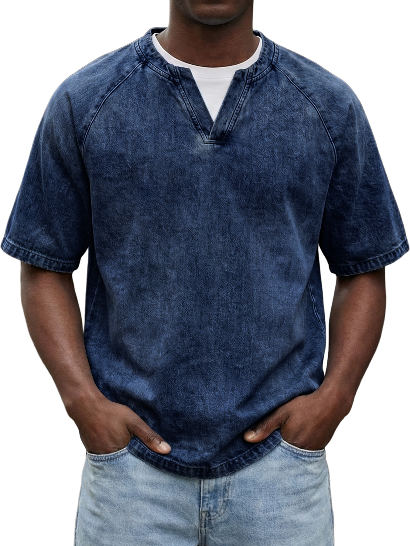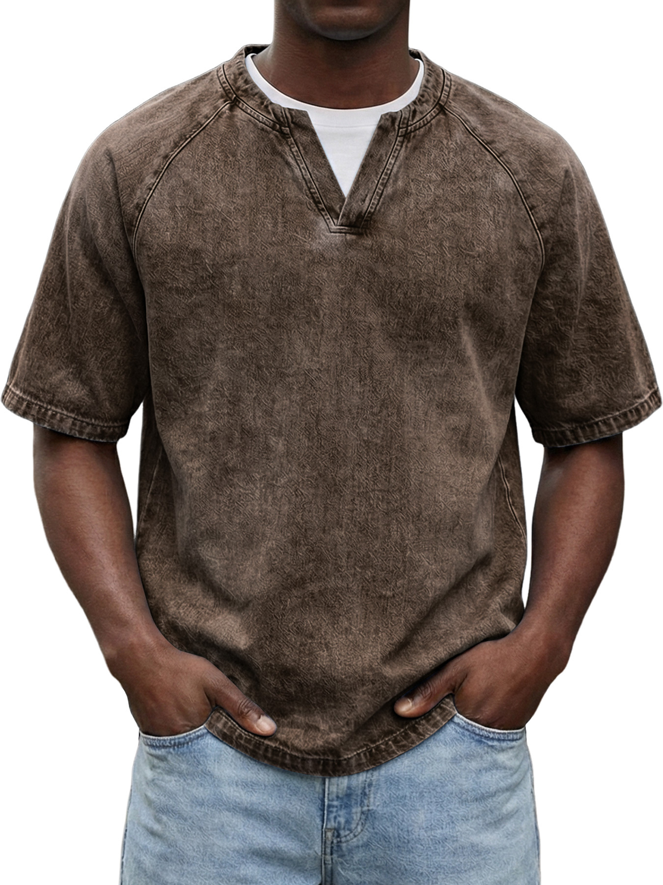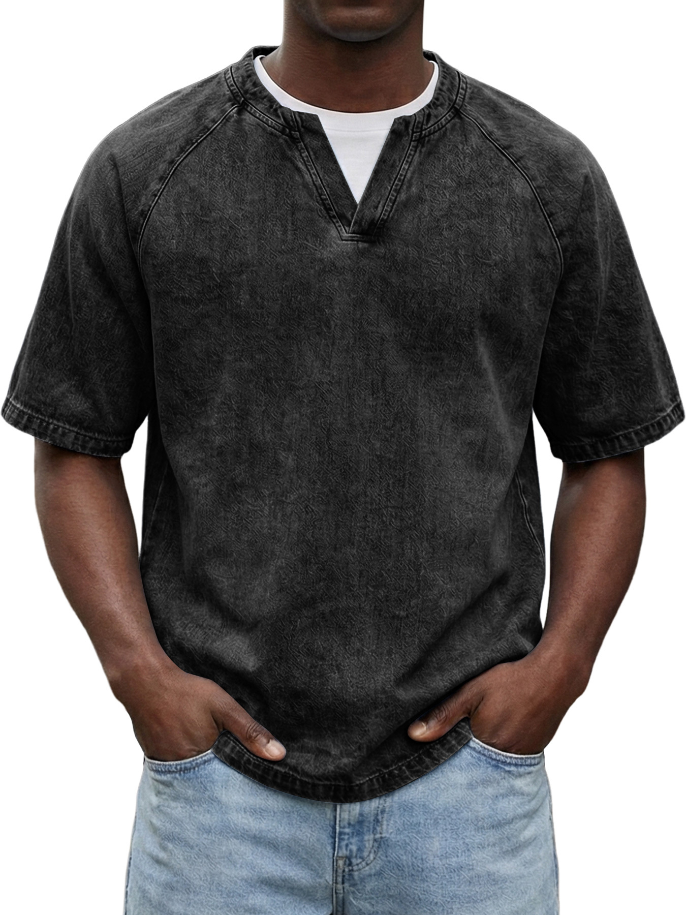 Men's Retro Raglan Faux Two-Piece Double Collar Casual Short-Sleeve T-Shirt