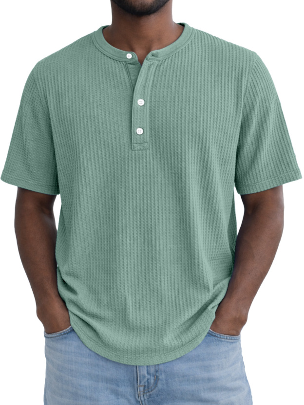 Men's Simple Everyday Waffle Button Down Short Sleeve Henley