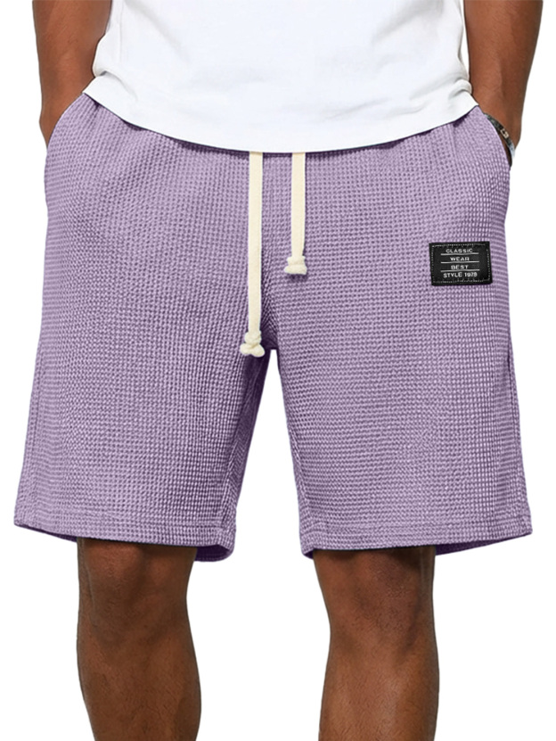 Men's Simple Waffle Embroidered Logo Casual Solid Color Shorts