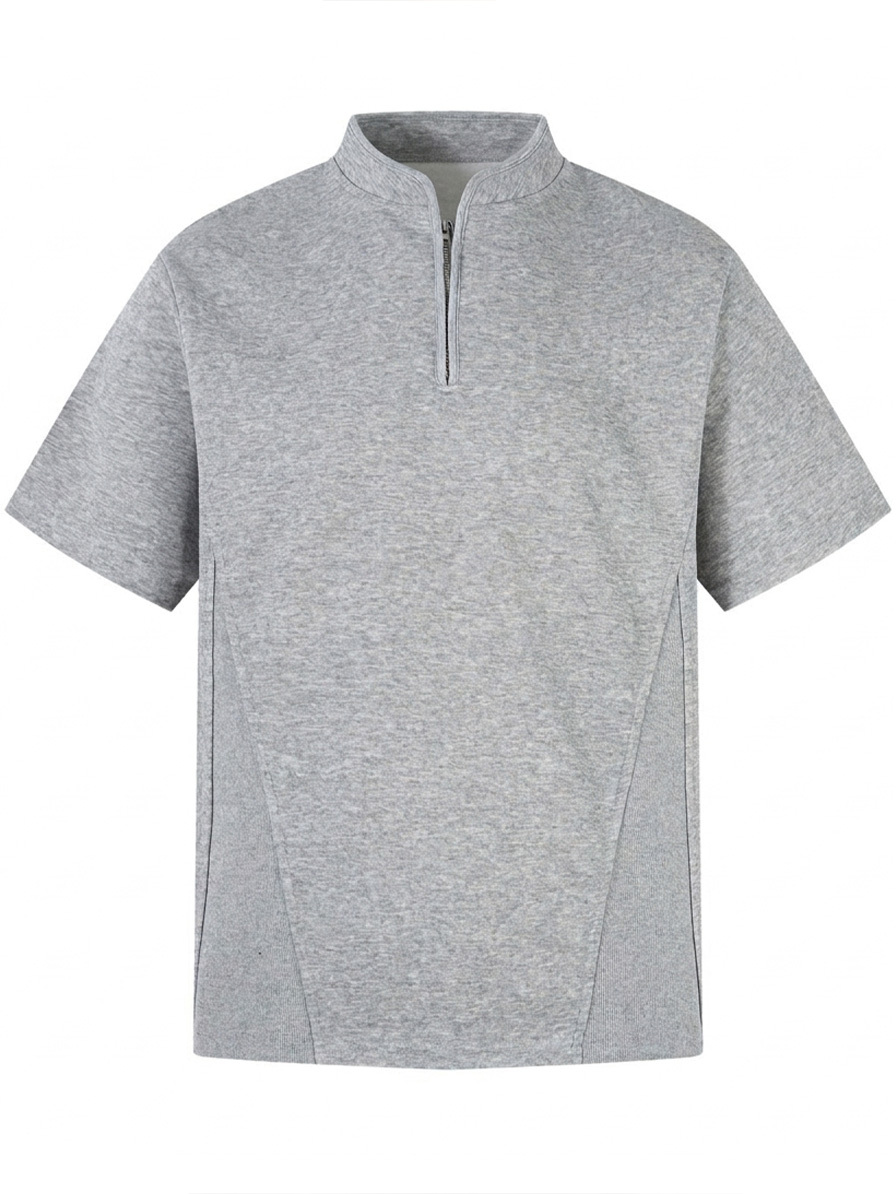 Men's Simple Zipper Patchwork Deconstructed Design Casual Short-Sleeve T-Shirt