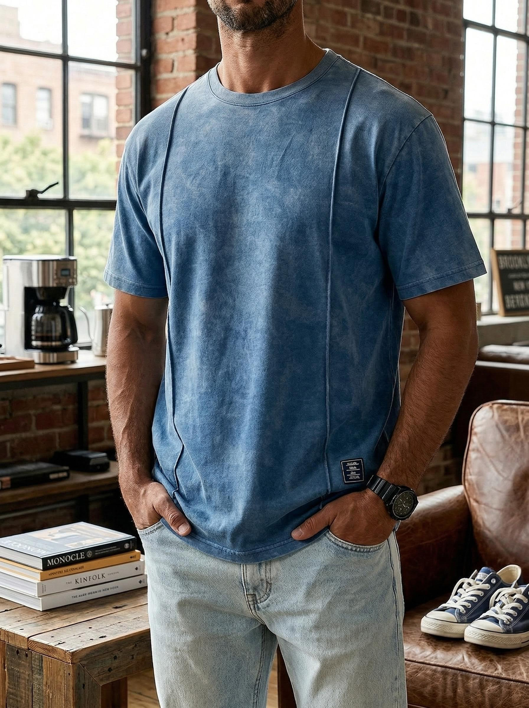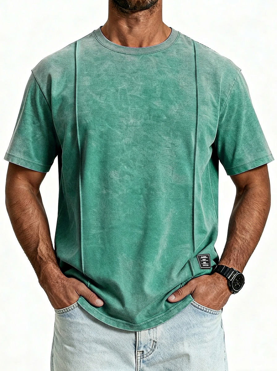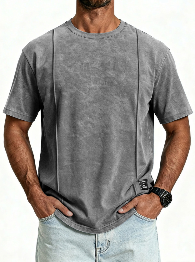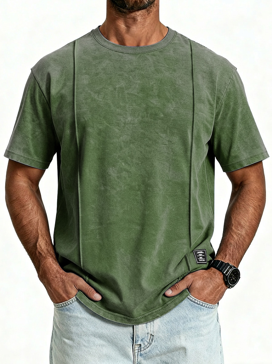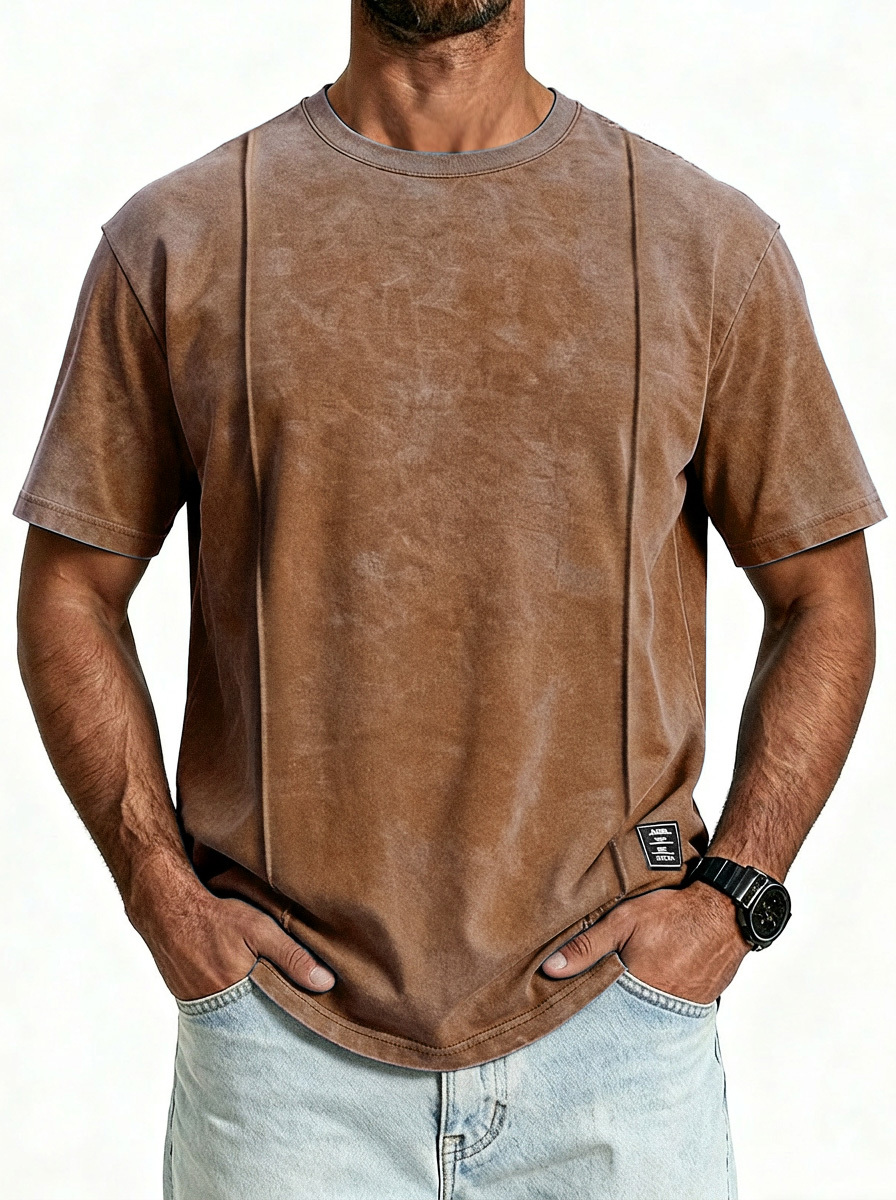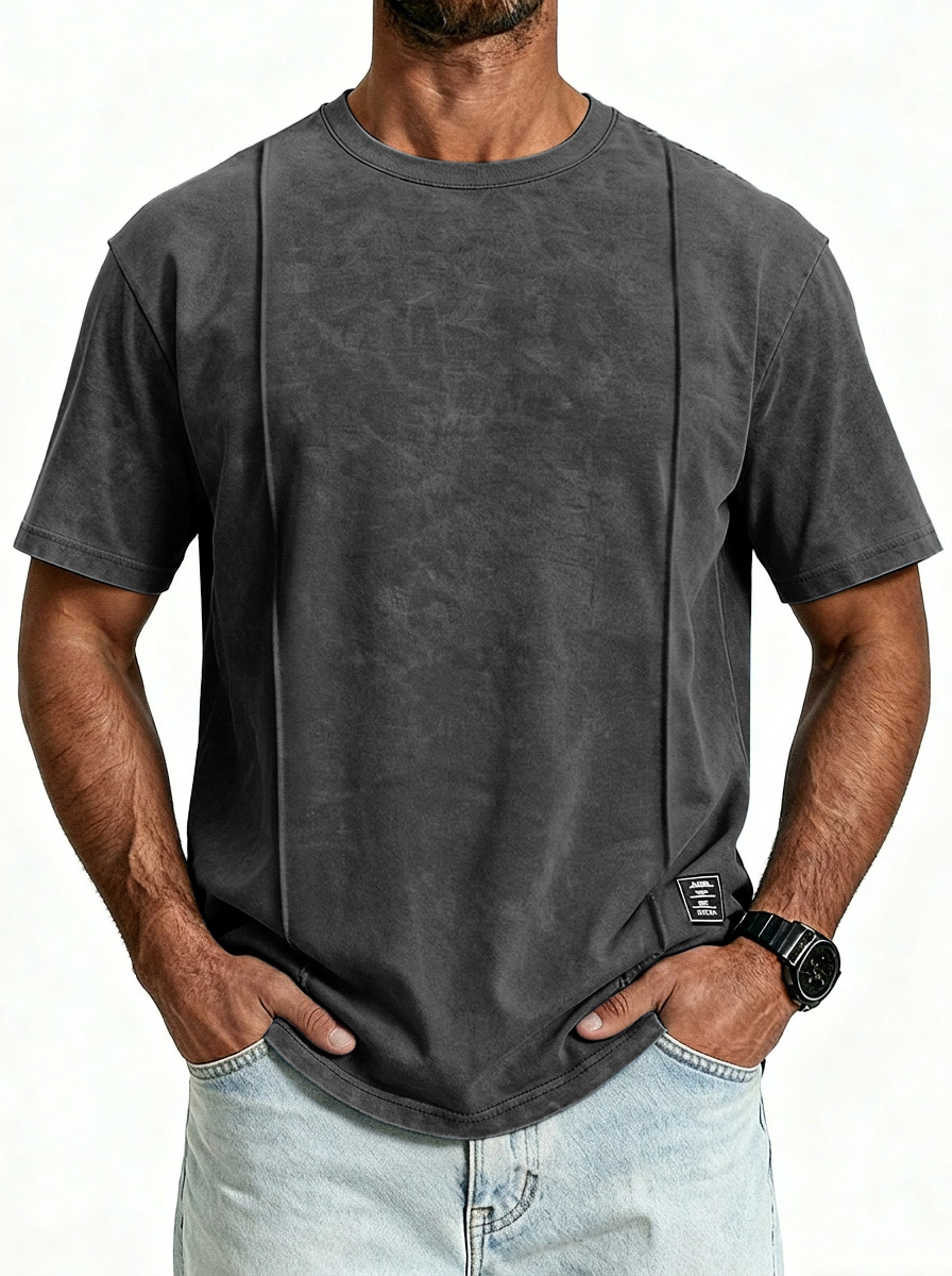Men's Vintage Unstitched Design Round Neck Short Sleeve T-shirt With Embroidery