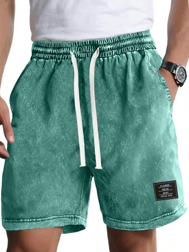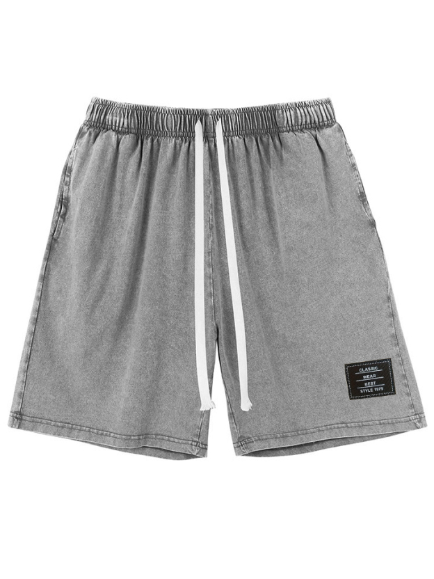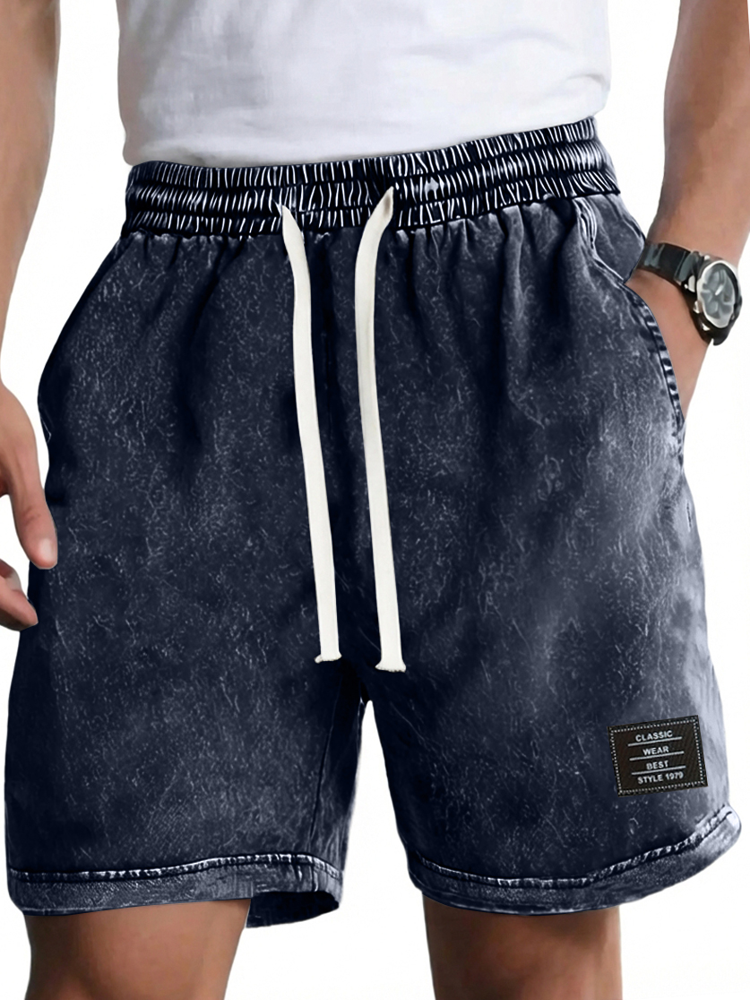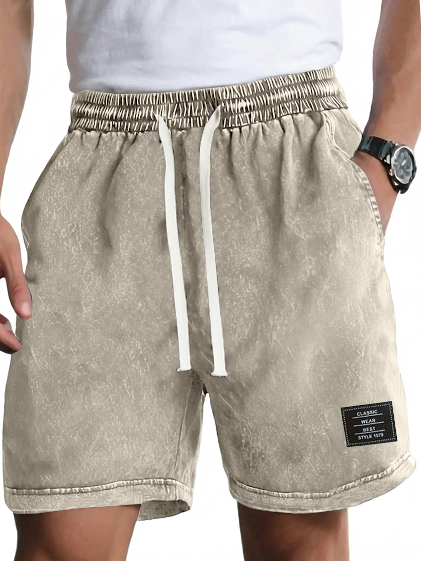 Men's Vintage Washed Distressed Cotton Embroidered Logo Multi-pocket Shorts
