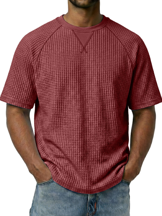 Men's Waffle-knit Crew Neck Raglan Sleeve Casual Short-sleeved T-shirt