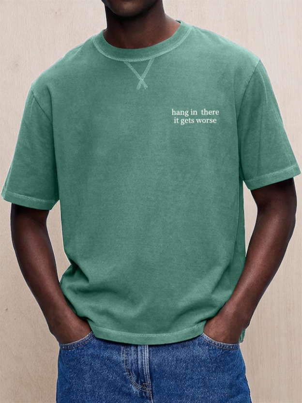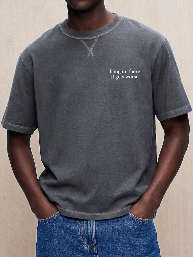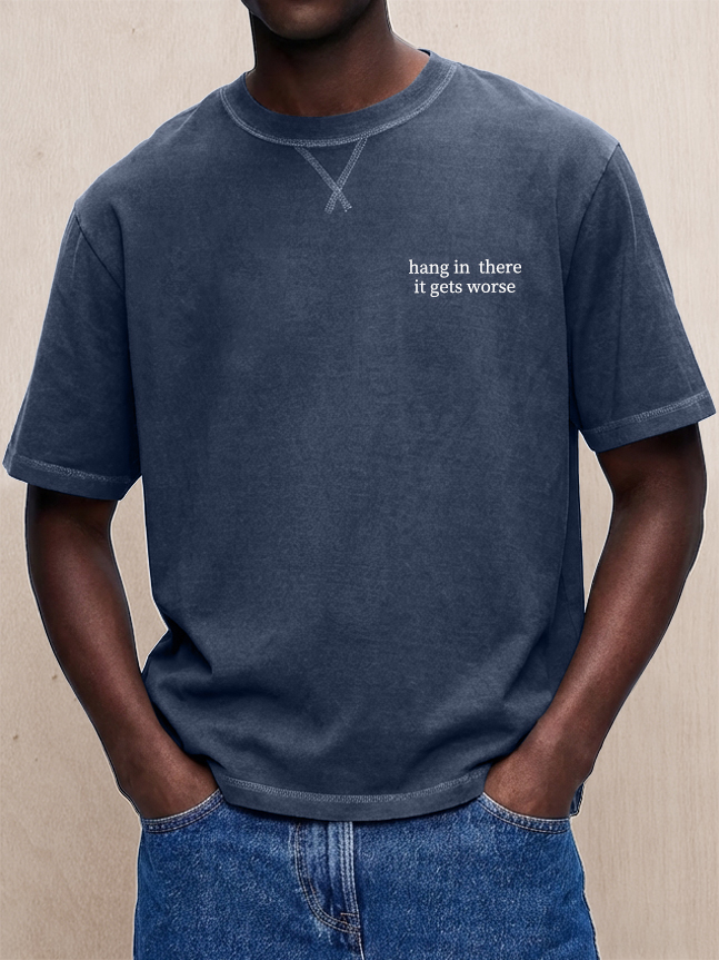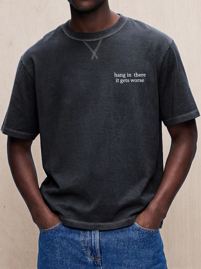 Men's Washed & Distressed "Hang In There, It Gets Worse" T-Shirt