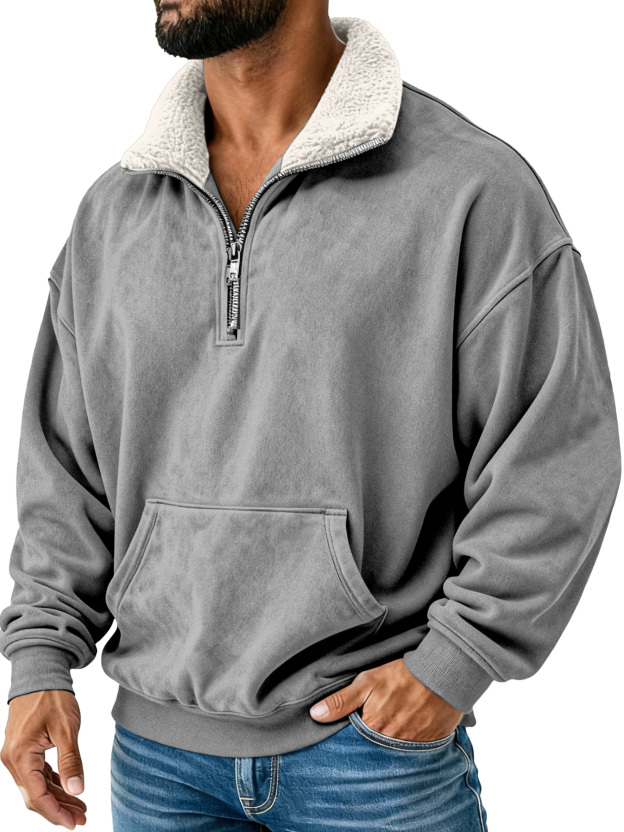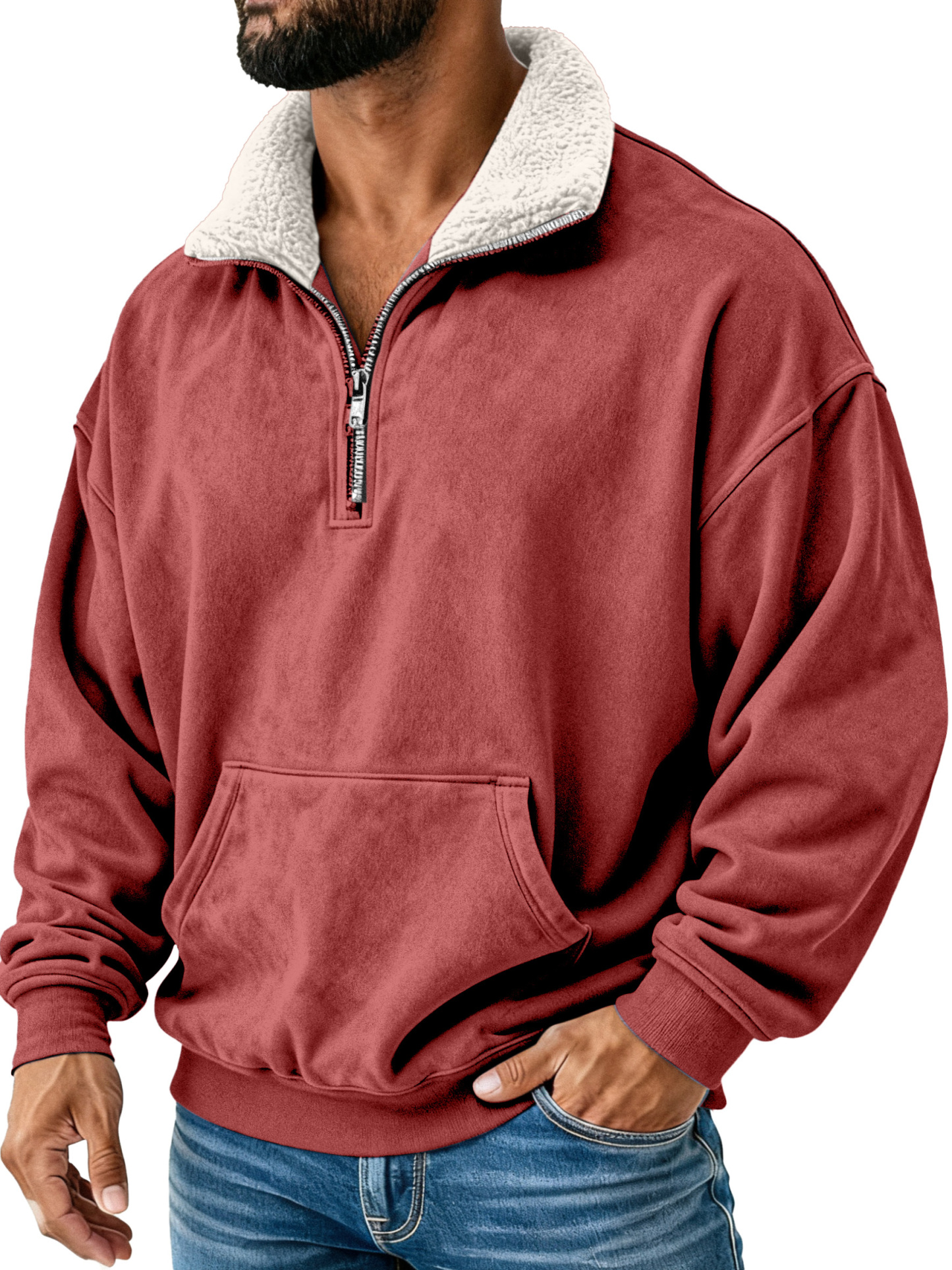 Retro Simple Plush Stand Collar Long Sleeve Sweatshirt