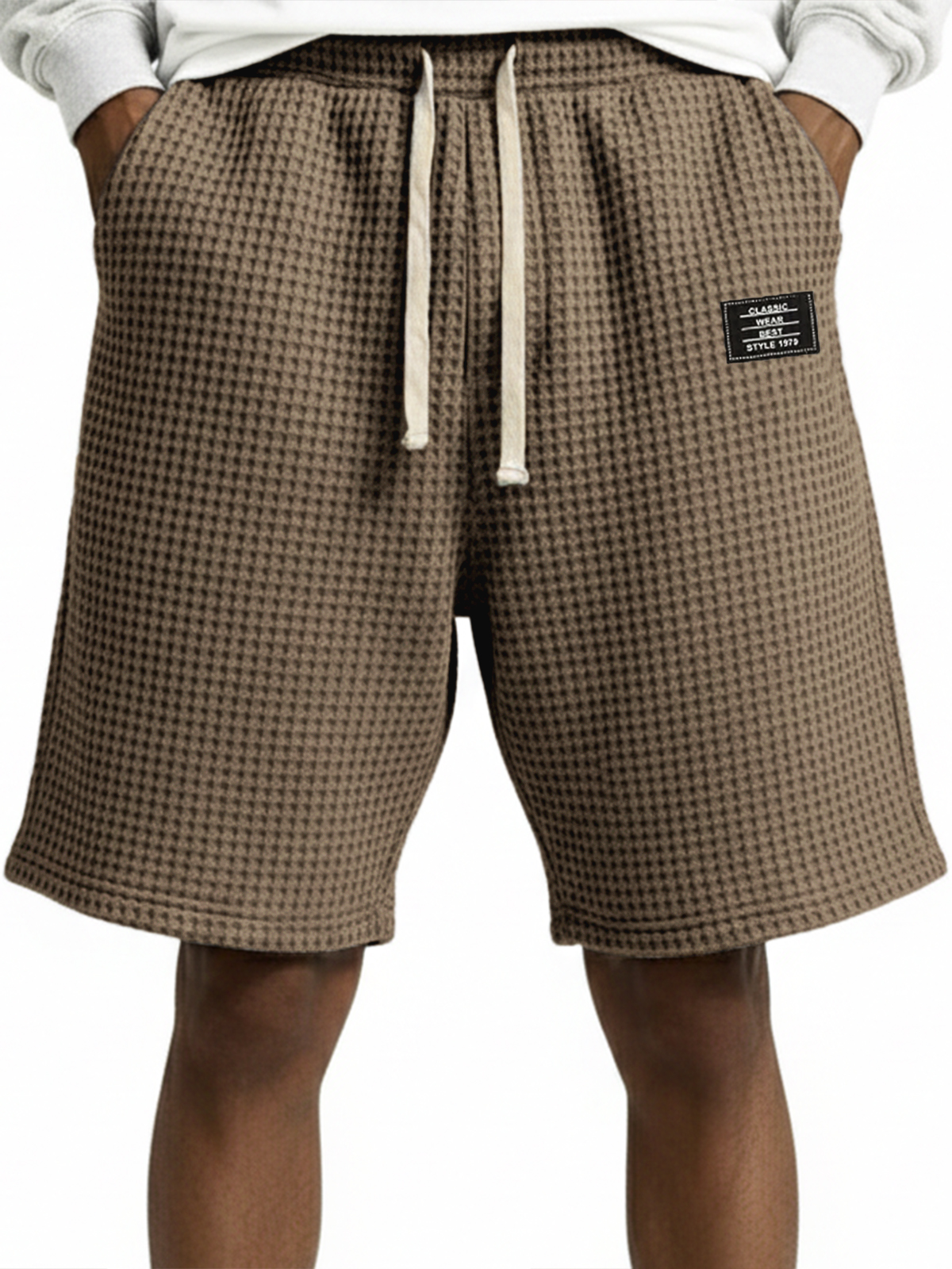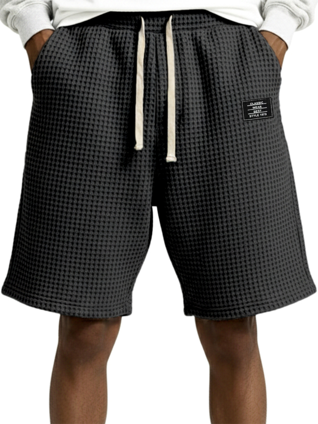 Waffle Embroidered Drawstring Shorts